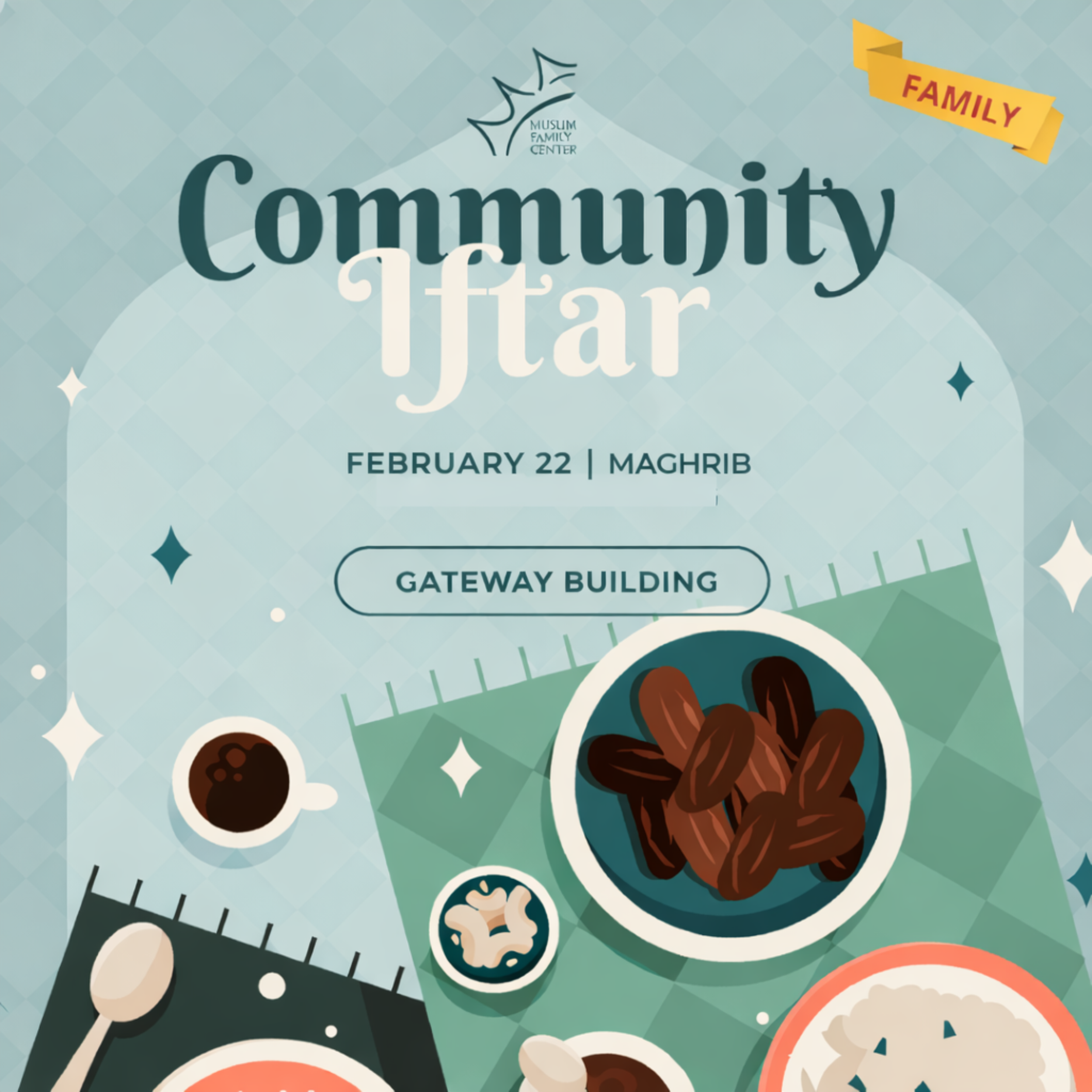 Join us for a Family Community Iftar at the masjid as we come together to break our fast in a welcoming and inclusive environment. The masjid will be providing iftar for the community, and all are welcome—brothers, sisters, children, families, neighbors, and guests.