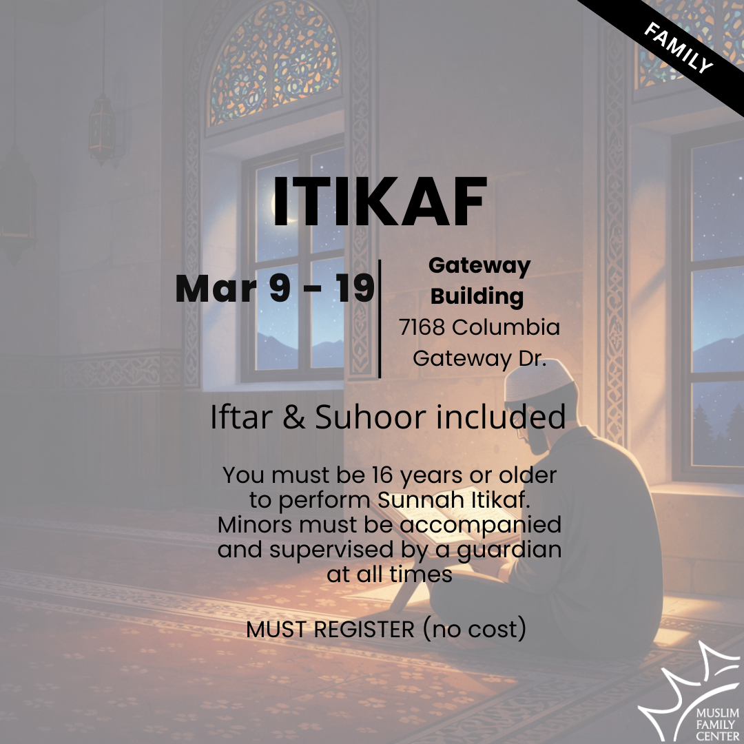 Itikaf is a special time of spiritual reflection, prayer, and devotion. We invite all brothers and sisters to take part in this blessed Sunnah together at MFC Gateway.